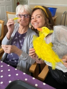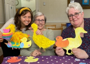 /in NewsA little crafting with Anne and a gentle touch of spring in the air – means the crafting is in full bloom whilst we prepare for spring. Because it is never too early to brighten the days ahead! The girls have been busy crafting with Anne, working hard on our Easter project for the second week in a row! With some exciting plans for decorations, everyone is putting in lots of effort to make sure everything looks wonderful in time. Maureen, Isobel, Anne and I are proudly showing off our Easter ducks! Isobel may be here for just a short stay, but she has joined in with so many activities and her smile lights up the room! It’s such a pleasure having her with us, especially helping with our Easter crafts!