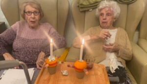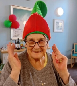 /in NewsWe were pleased as punch to be joined by so many lovely family members at our Christmas party – the lounge was fit to burst and filled with chatter and laughter! Everyone made such an effort to look festive and Christmassy in knitted jumpers and frocks! Christmas Eve at St. Petrocs was a merry affair. Spirits were high and our home was filled with smiles and laughter. This was often down to an appearance of one our many silly hats which our friends donned with glee! Here is Julia and Audrey posing with their hats! Don’t they look gorgeous!